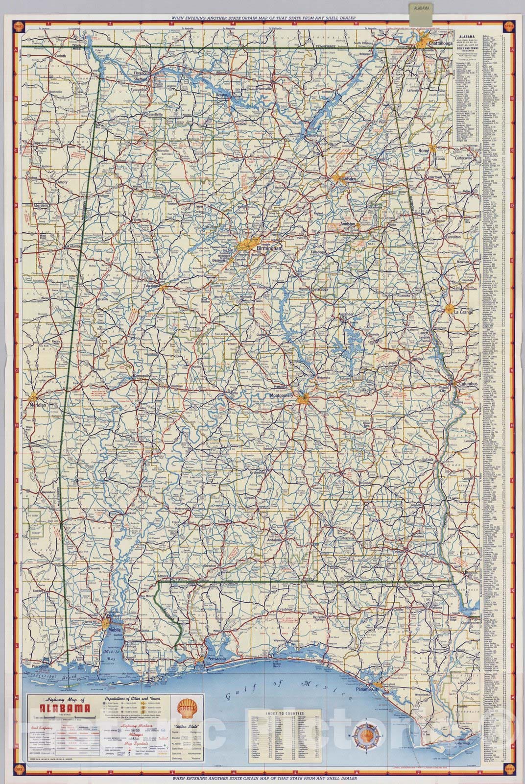 Historic Map : National Atlas 1956 Shell Highway Map of Alabama