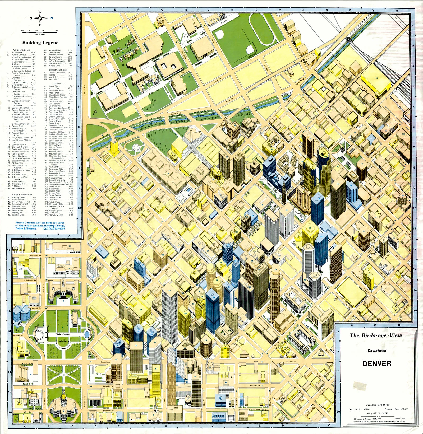 C0 Denver) The Birds eye View Downtown Denver – The Old Map